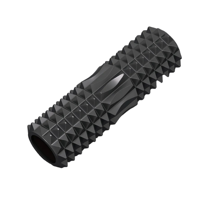 Answer 3: The foam roller features a pyramid-studded design that helps to deeply relieve tension in muscles and a pyramid-prism center that targets your back and calves, enhancing the efficacy of your muscle recovery.